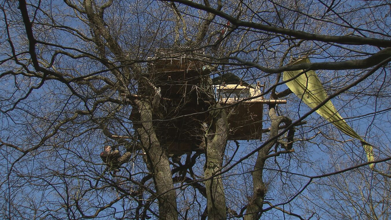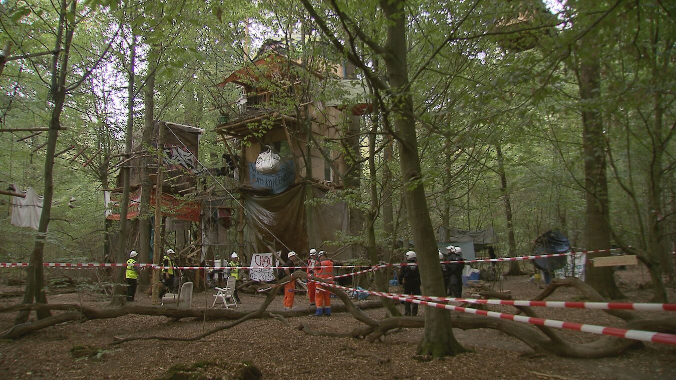 Die Baumbesetzer*innen im Hambacher Forst versuchen die Braunkohlebagger zu stoppen, indem sie sommers wie winters auf den Bäumen ausharren. Doch RWE rodet jedes Jahr ein Stück Wald und rückt immer weiter vor, unterstützt von der Polizei. Kann der Widerstand halten, oder wird das Hüttendorf in den Baumwipfeln geräumt?