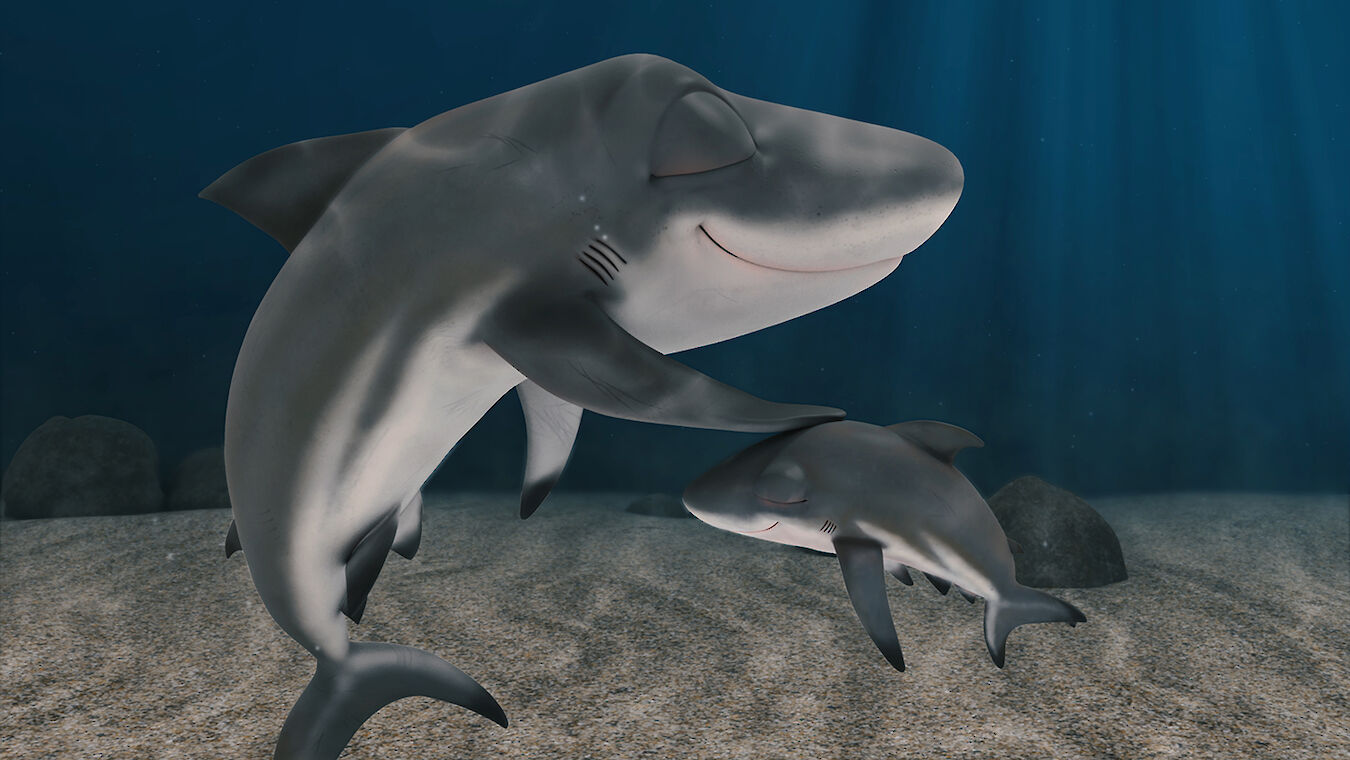 Der Animationskurzfilm erzählt von einem Hai, der seinem Sohn zeigt, wie man schwimmt und jagt. Das Duo erkundet den Ozean und hat viel Spaß – bis Vater-Hai unerwartet verschwindet.